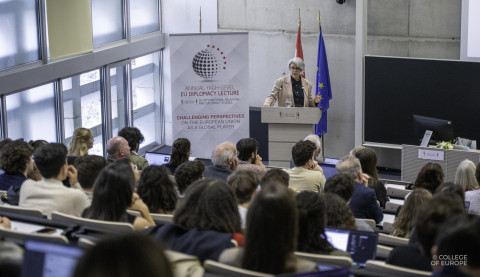 Le département de Relations internationales et études diplomatiques de l’Union européenne organise une conférence annuelle de haut niveau consacrée à des sujets spécifiques de la diplomatie européenne. La conférence publique « EU Diplomacy Lecture » est prononcée par des personnalités provenant de l’Union européenne et a lieu en automne.