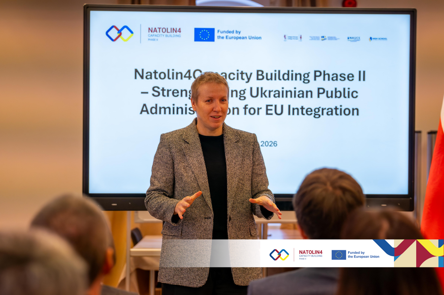 Natolin4Capacity Building Phase II — Strengthening Ukrainian Public Administration for EU Integration (N4CB-II) is funded by the European Union and jointly implemented by the College of Europe in Natolin and the High School of Public Governance, in cooperation with the Government Office for Coordination of European and Euro-Atlantic Integration and the National Agency of Ukraine on Civil Service.