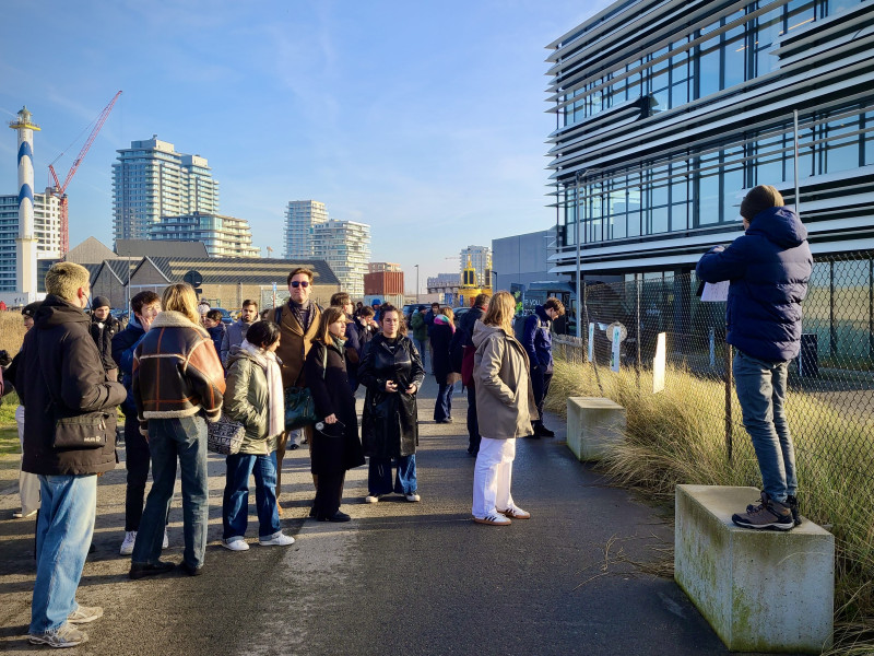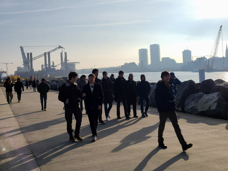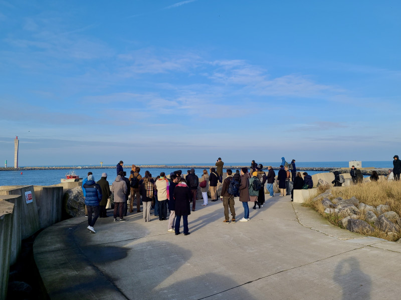 The day continued with a walking tour of Ostend's port and city landmarks, showcasing the region’s historical and environmental significance. Students discovered key sites such as the Napoleonic fort and WW1 and WW2 defense systems, as well as old fishing boats and facilities that connect the city’s rich maritime heritage with its present-day activities. The group also explored climate adaptation measures implemented in Ostend, including a newly completed rainwater collection system funded by the European Regional Development Fund (ERDF).
