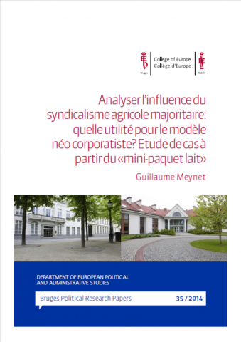 The Department of European Political and Administrative Studies has published a new 'Bruges Political Research Paper' entitled " Analyser l’influence du syndicalisme agricole majoritaire: quelle...