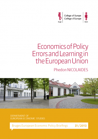 The Department of European Economic Studies has published a new 'Bruges European Economic Policy briefing' entitled "Economics of Policy Errors and Learning in the European Union" by Phedon NICOLAIDES... -