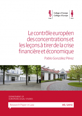 Research Paper in Law 6/2013, Le contrôle européen des concentrations et les leçons à tirer de la crise financière et économique