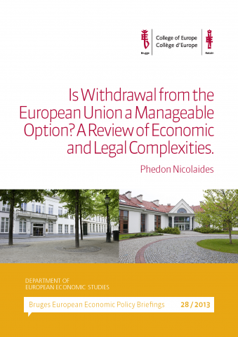 The Department of European Economic Studies has published a new 'Bruges European Economic Policy Briefing' entitled "Is Withdrawal from the European Union a Manageable Option? A Review of Economic and...