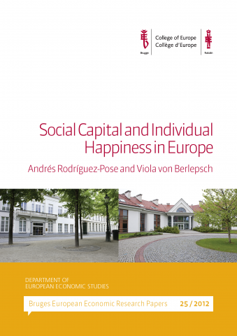 The Department of European Economic Studies has released a new Bruges European Economic Research paper, entitled 'Social Capital and Individual Happiness in Europe', written by Professor Andrés...